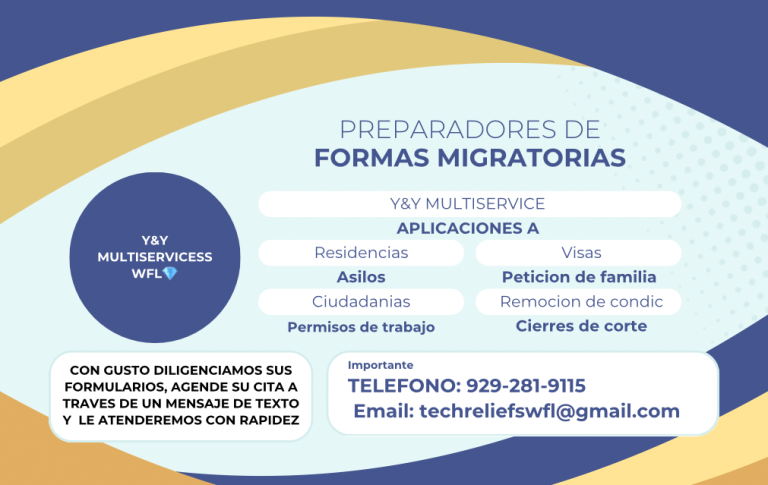 Soy preparadora de formas migratorias (Asilo Defensivos, afirmativos, TPS, permisos de trabajos, peticiones familiares, cambio de dirección, cambio de jurisdicciones, Parol Humanitario etc)